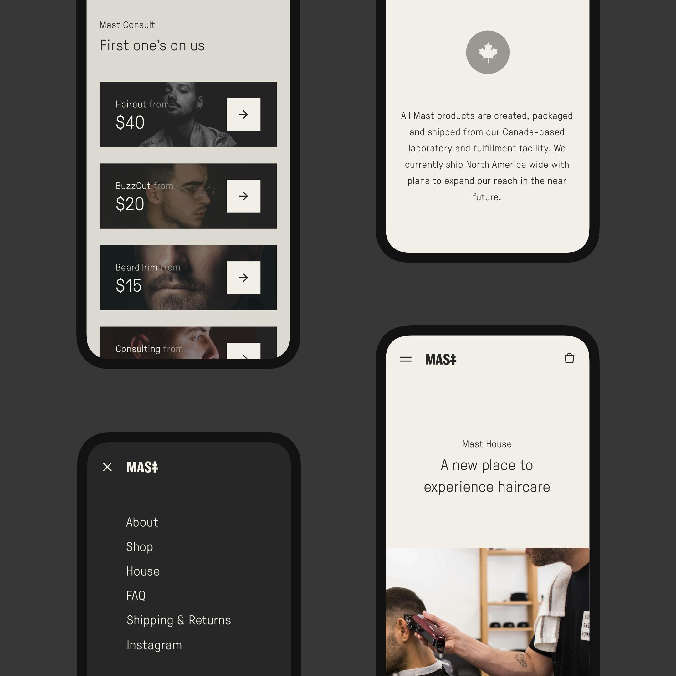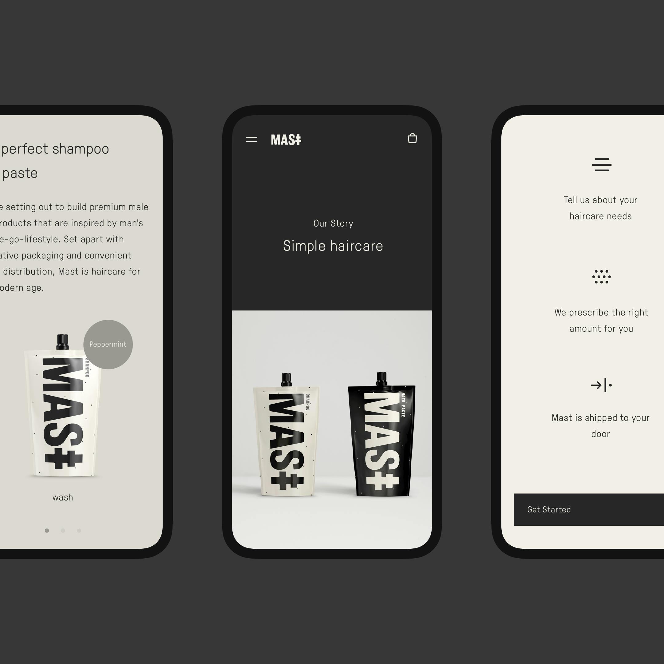 Mast had a vision for a new direct-to-consumer line in mensâ haircare. The company envisioned a future of well-designed salon products and accompanying salonsâwith an omni-channel experience across the web and store. We developed the business model, and together, we created the brand, product packaging, website and ordering experience.
